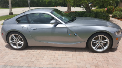 This 2007 BMW Z4 M Coupe is finished in Silver-Gray Metallic over a black extended leather interior and shows 44k miles. The original owner purchased the car from Weatherford BMW in Berkeley, California, and it remained in California and Arizona with two subsequent owners until the seller’s purchase in June 2018. Powered by a 3.2L S54 inline-six paired with a 6-speed manual transmission, it is equipped with factory options including xenon lighting and navigation as well as aftermarket Enkei wheels and performance brake pads. An oil change and inspection have been performed in preparation for sale. This M Coupe is offered by the selling dealer in Illinois with a Carfax report, service records, and a clean California title.
