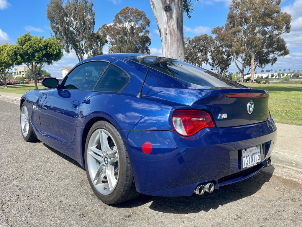 Approximately 1,815 Z4 M Coupes were produced for the North American market between 2006 and 2008, and this E86 M Coupe is one of 297 examples finished in Interlagos Blue Metallic. Features include xenon headlights with washers, quad exhaust outlets, rain-sensing windshield wipers, and tinted windows. Clear coat failure is visible on the mirror caps, and the seller notes rock chips around the body.