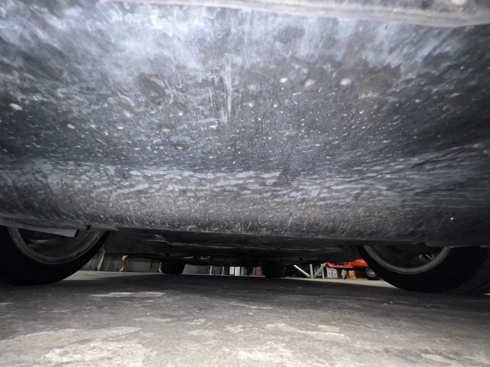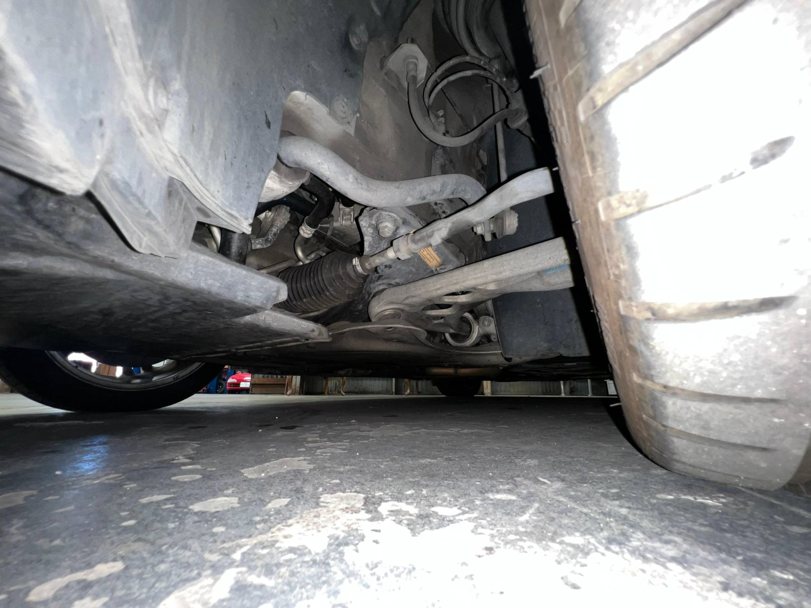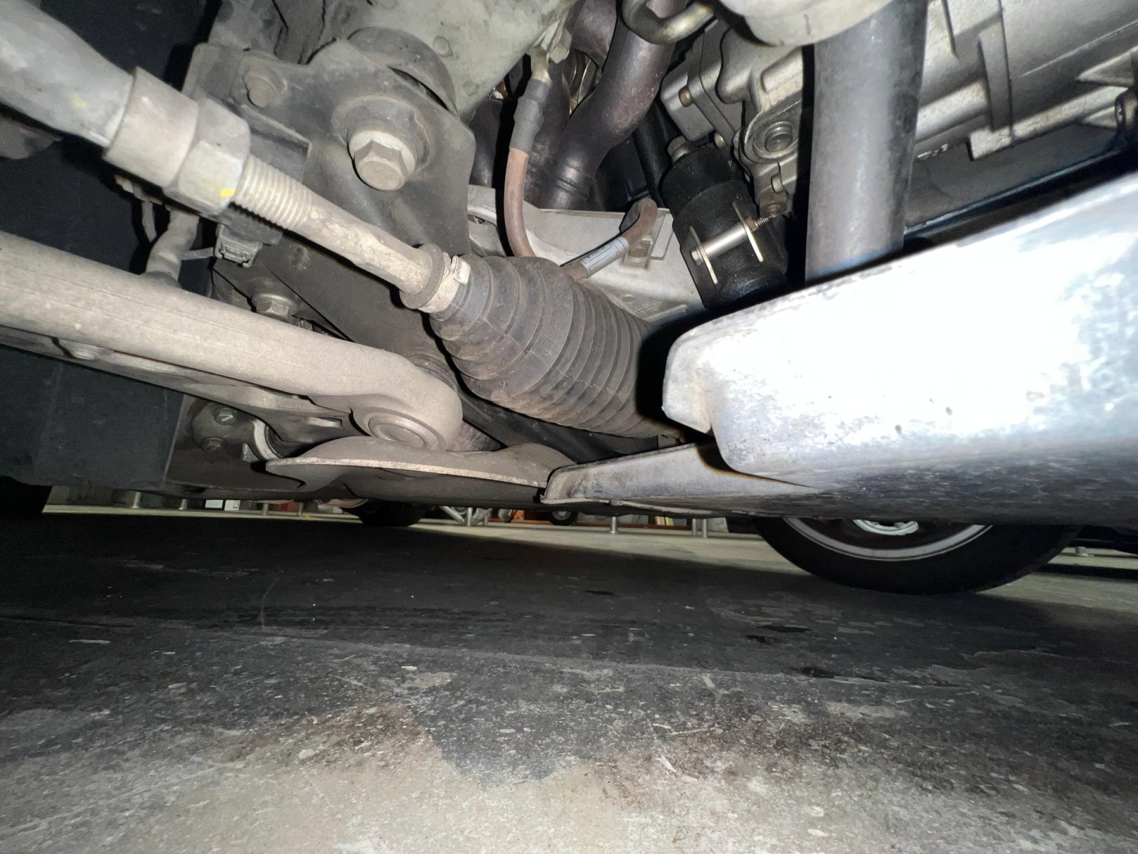 - Curb rash on the passenger-side front wheel