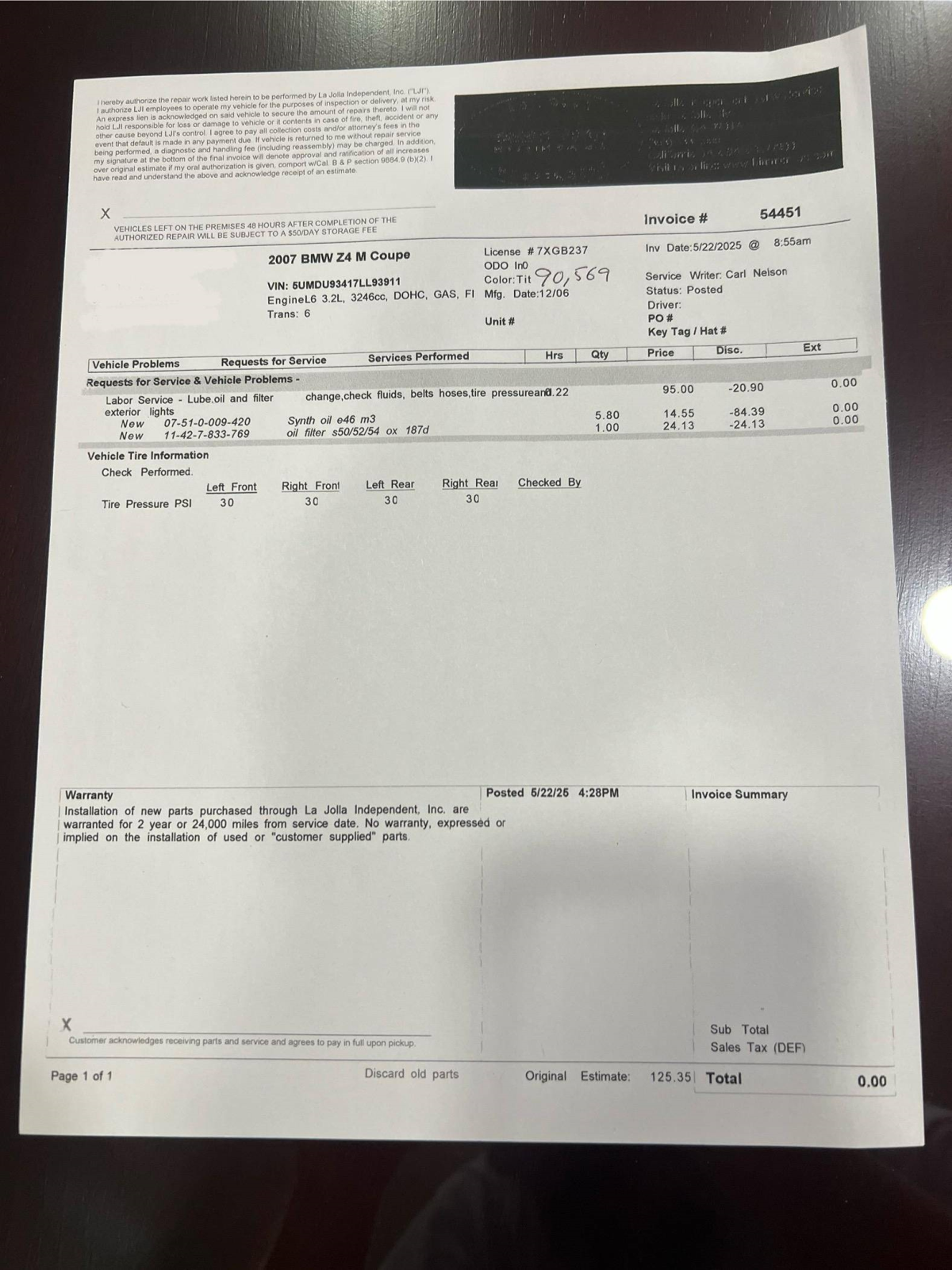 - May 2025 (90,569 miles): Engine oil and filter changed
