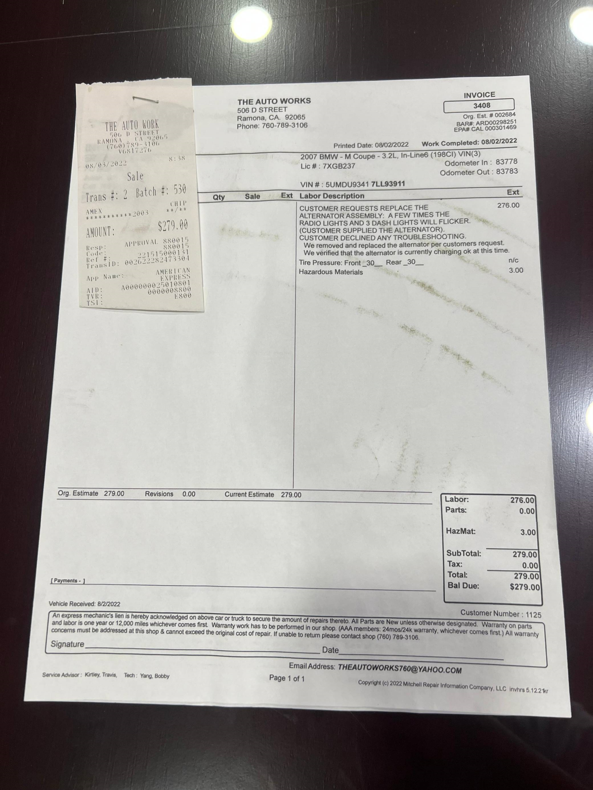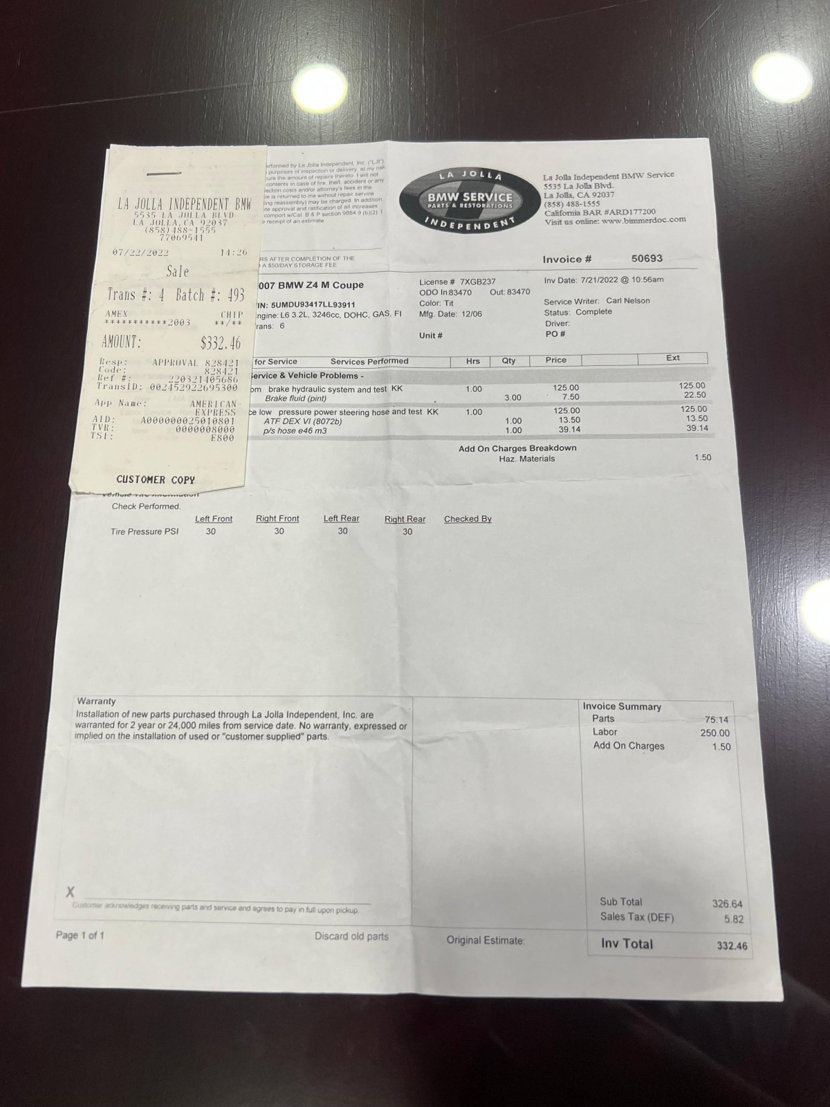 - July 2022 (83,470 miles): Brake and power steering fluid flushed