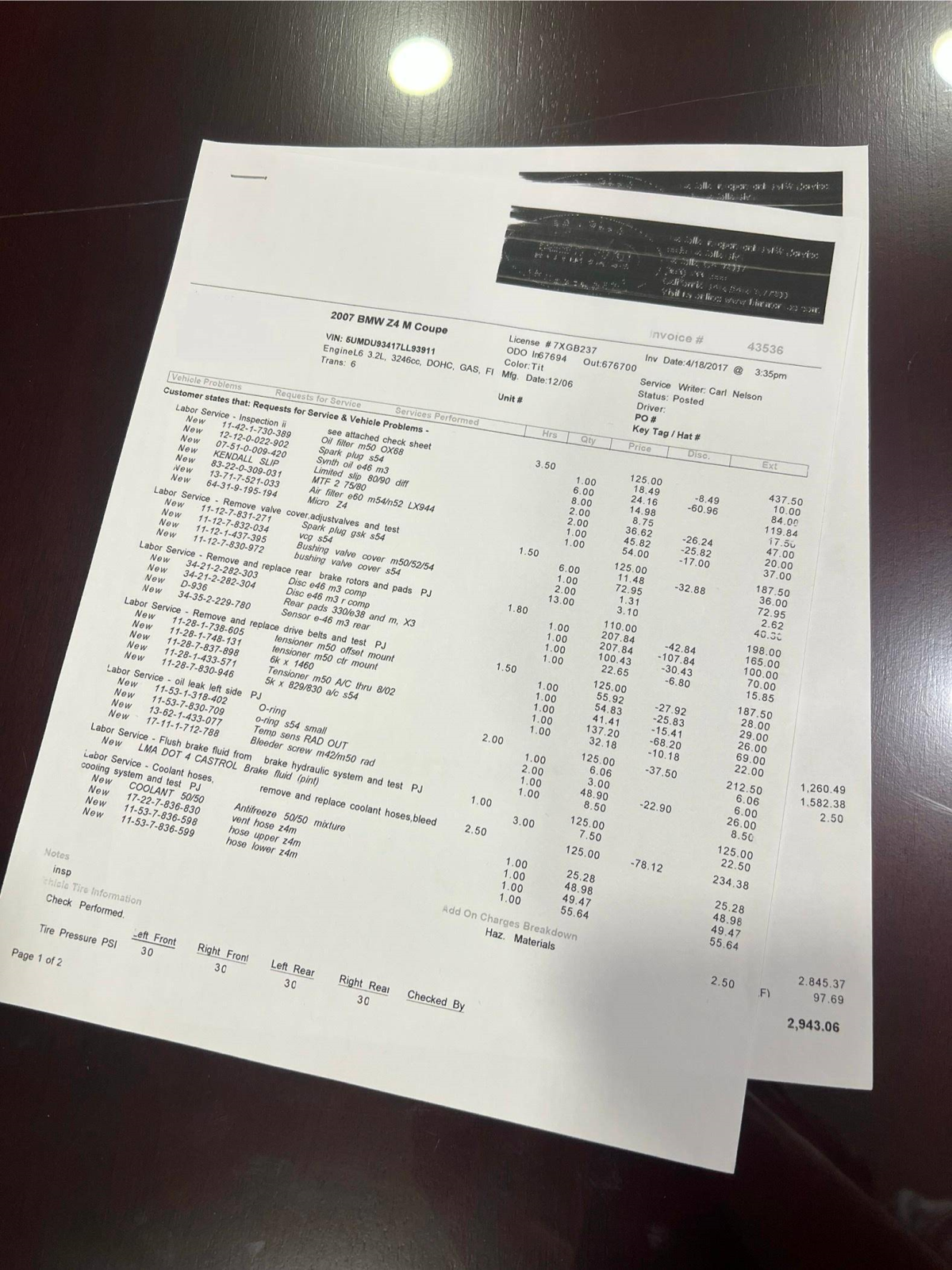 Service documentation in the photo gallery indicates that the following maintenance has been performed:
