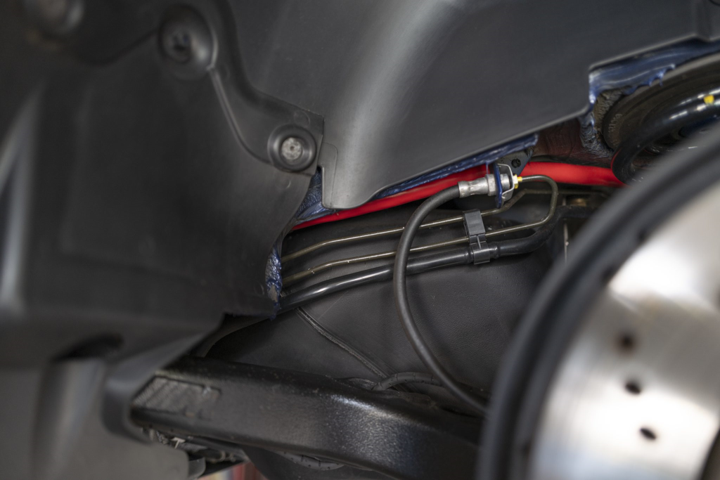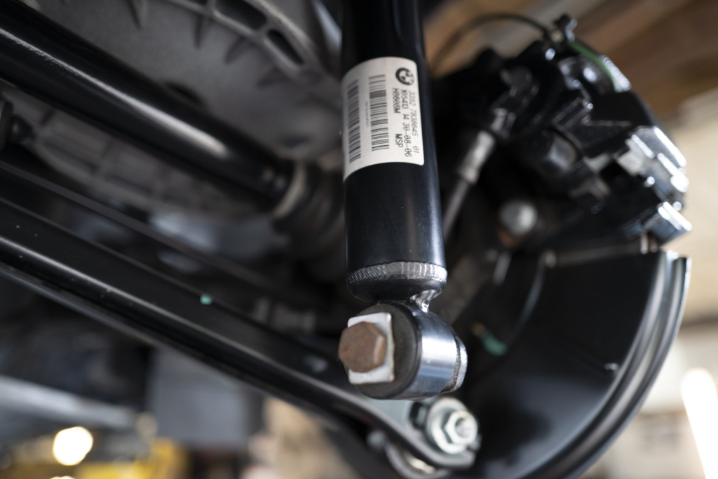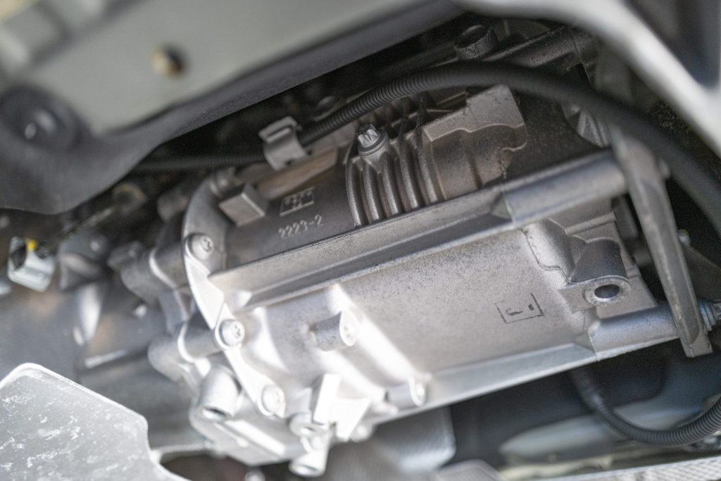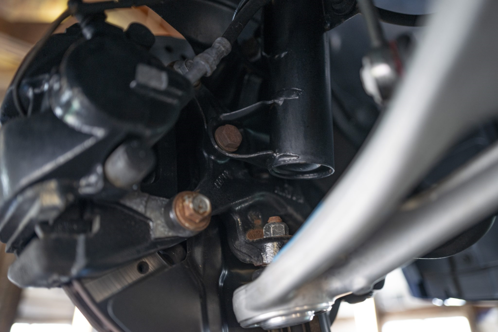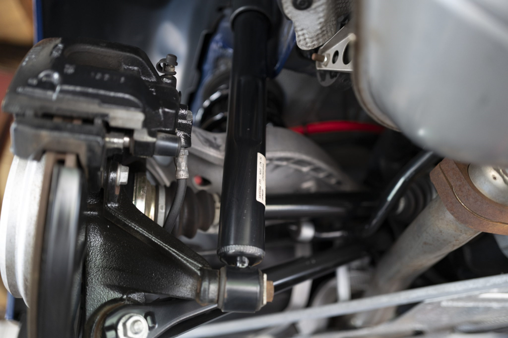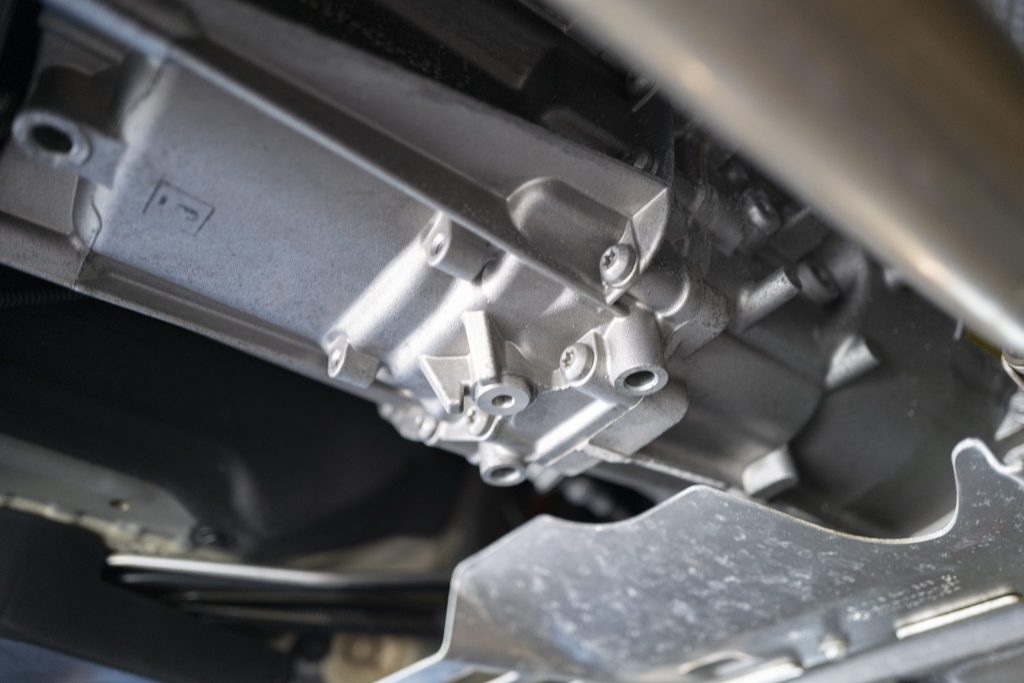 Power is sent to the rear wheels through a six-speed manual transmission and a limited-slip differential. Additional photos of the underside are provided in the gallery.