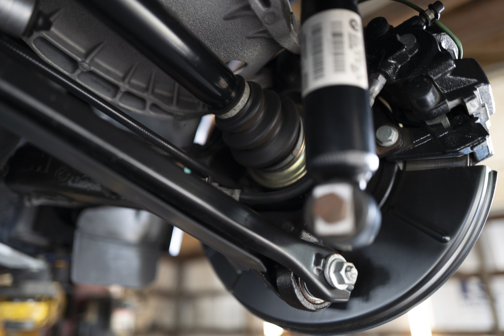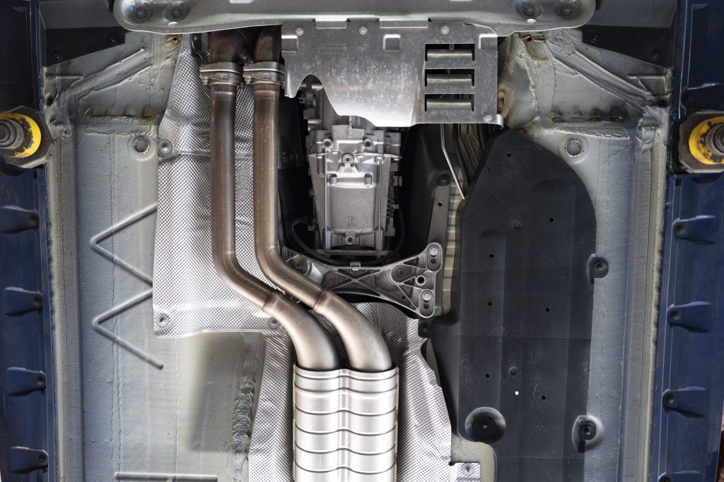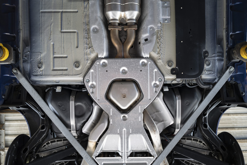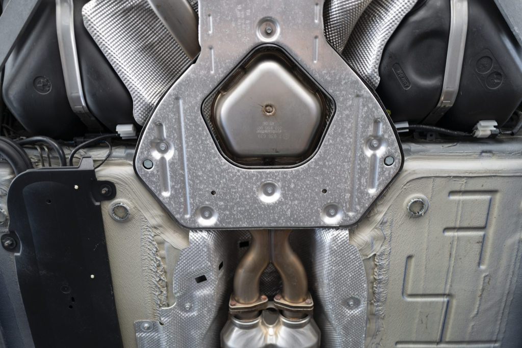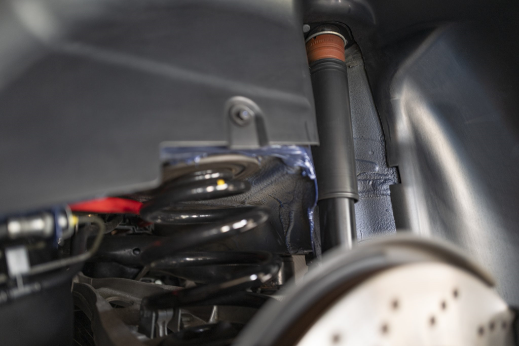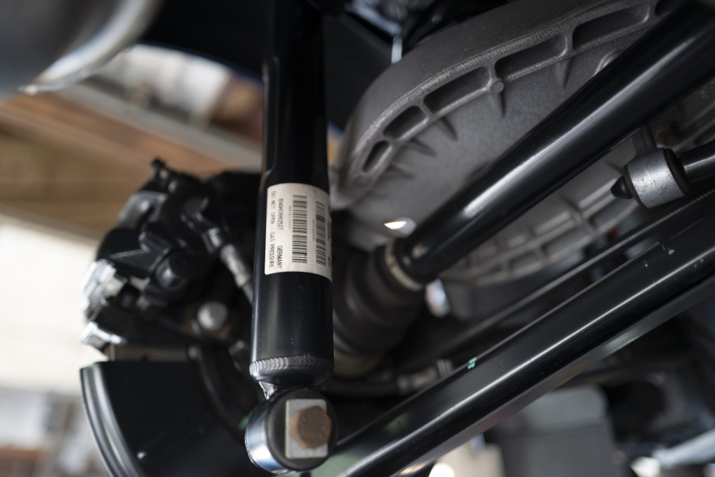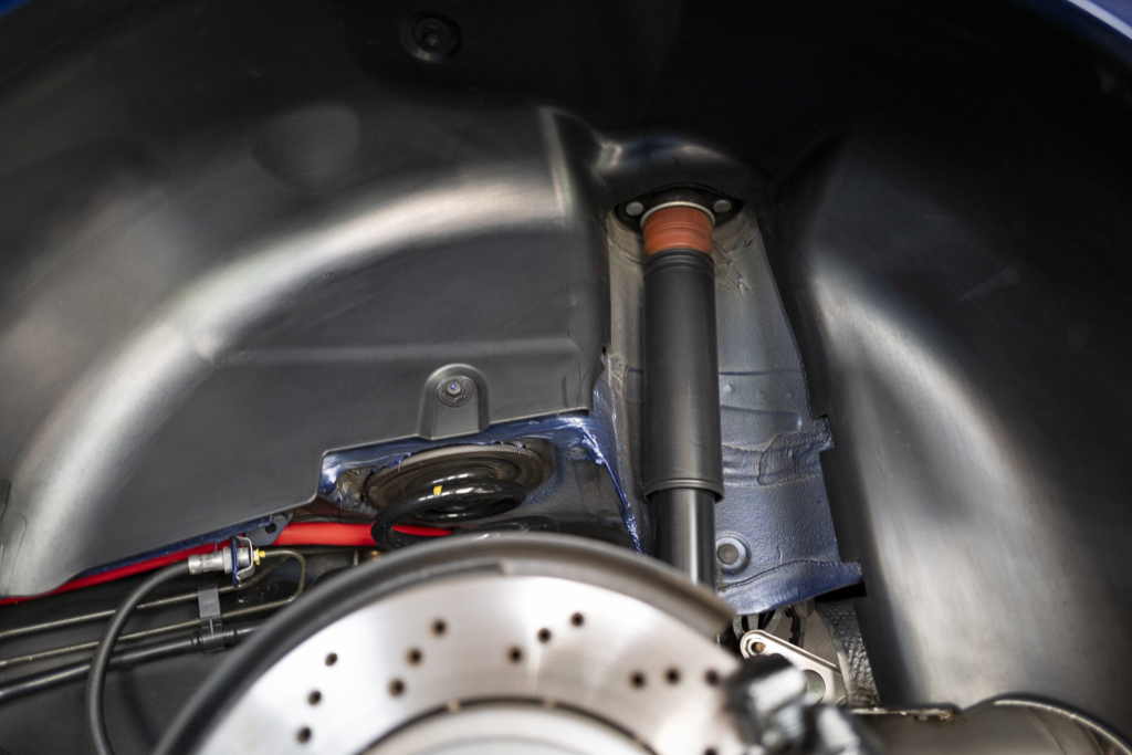 Power is sent to the rear wheels through a six-speed manual transmission and a limited-slip differential. Additional photos of the underside are provided in the gallery.