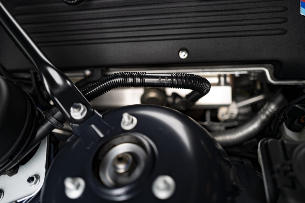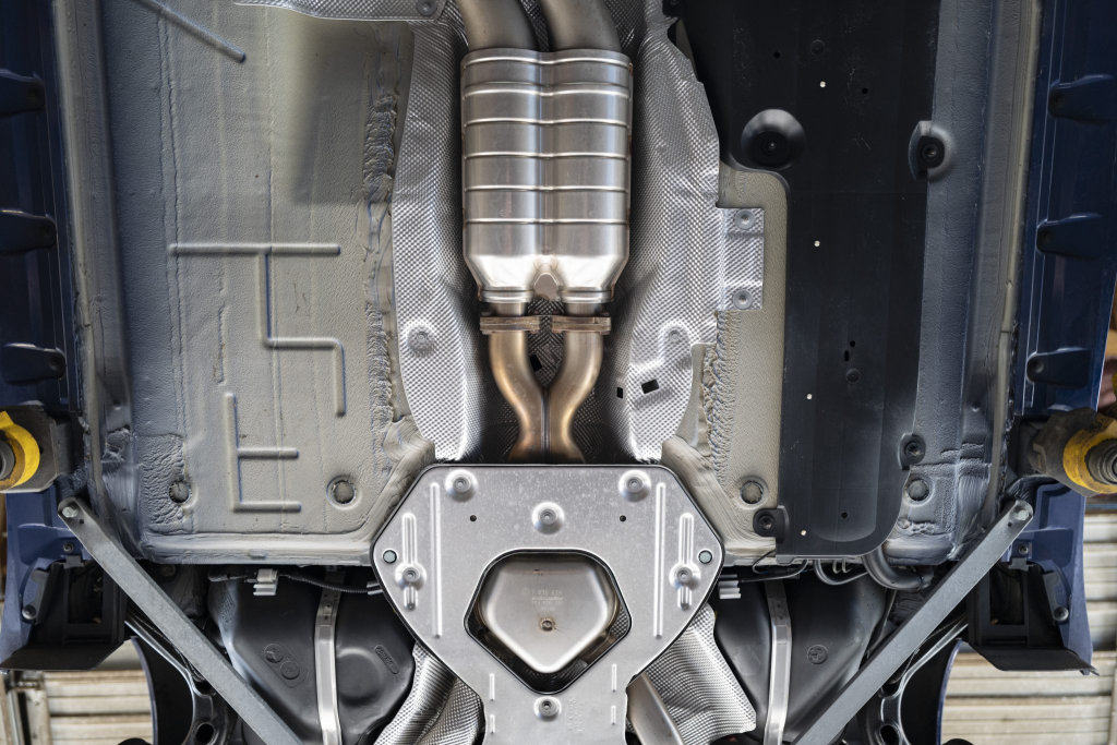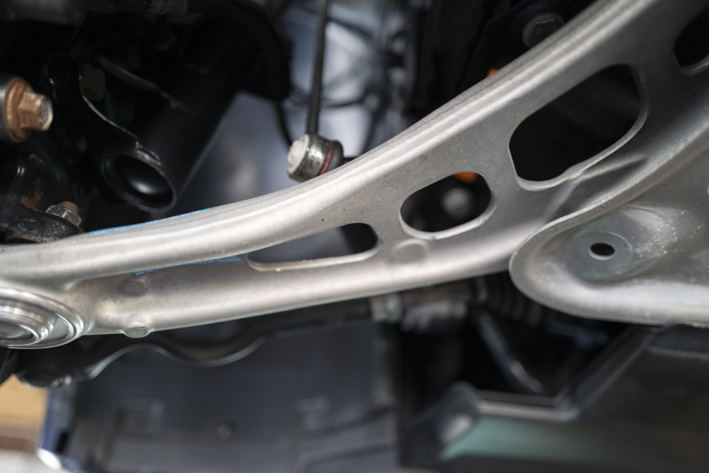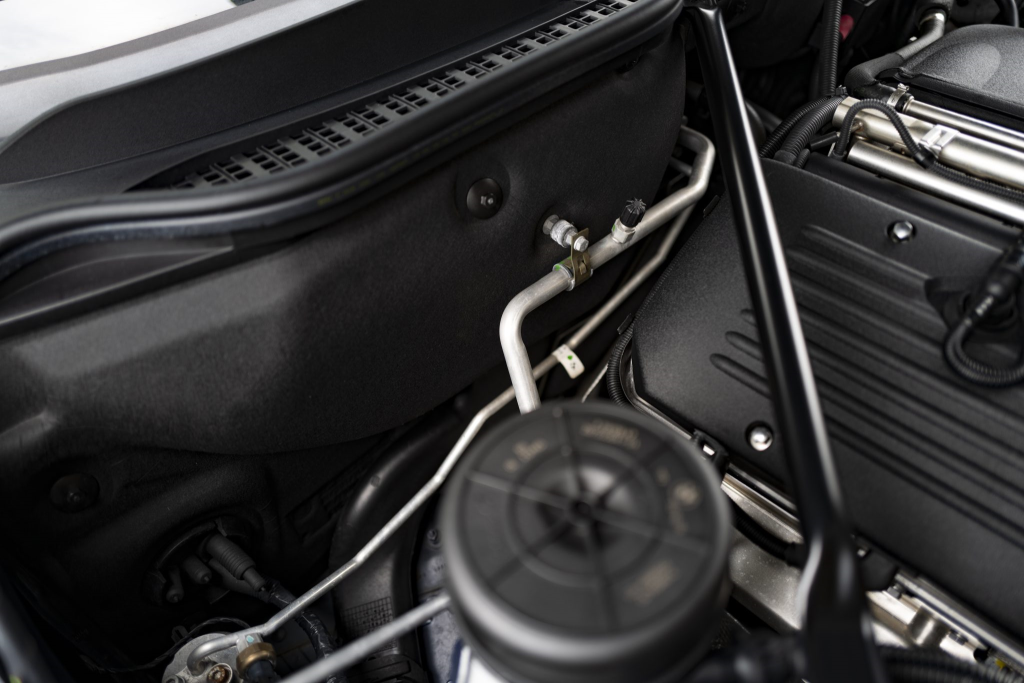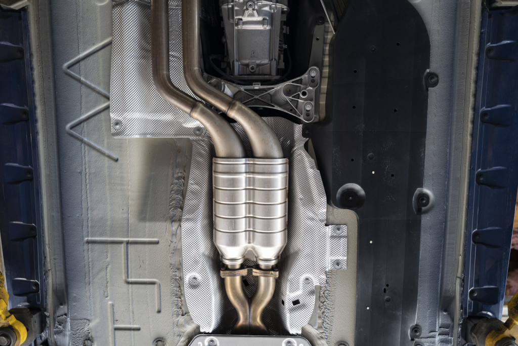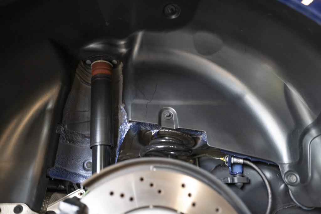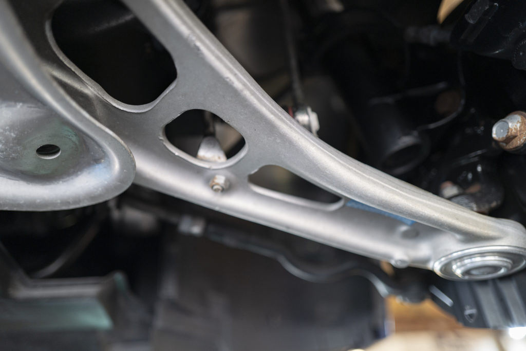 Power is sent to the rear wheels through a six-speed manual transmission and a limited-slip differential. Additional photos of the underside are provided in the gallery.