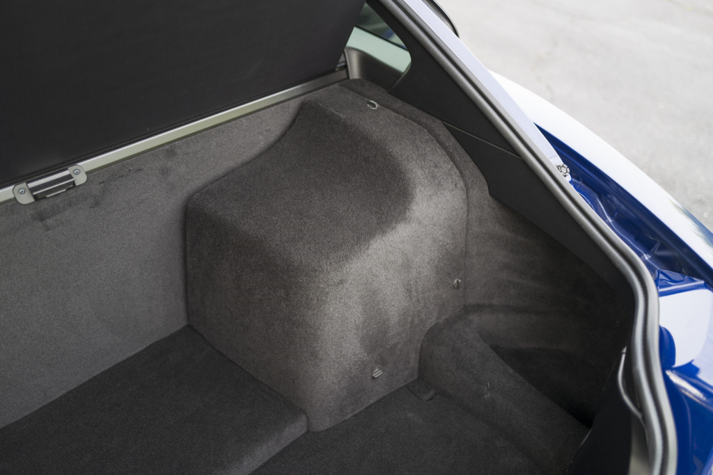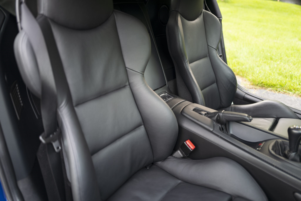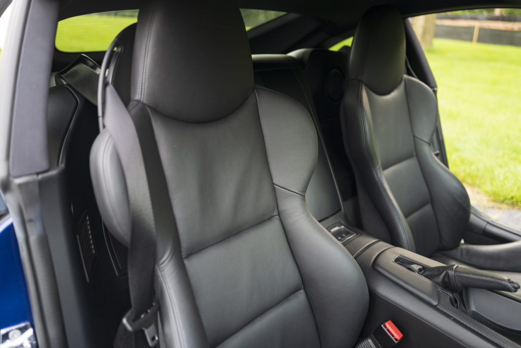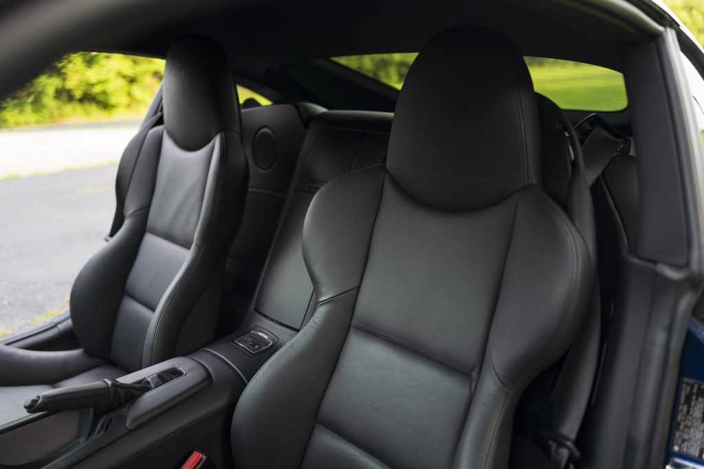 The multifunction leather-wrapped steering wheel features tri-color stitching and frames a 190-mph speedometer and a tachometer with an 8k-rpm redline as well as gauges for oil temperature and fuel level. The digital odometer indicates 5k miles, approximately 900 of which were added during current ownership.