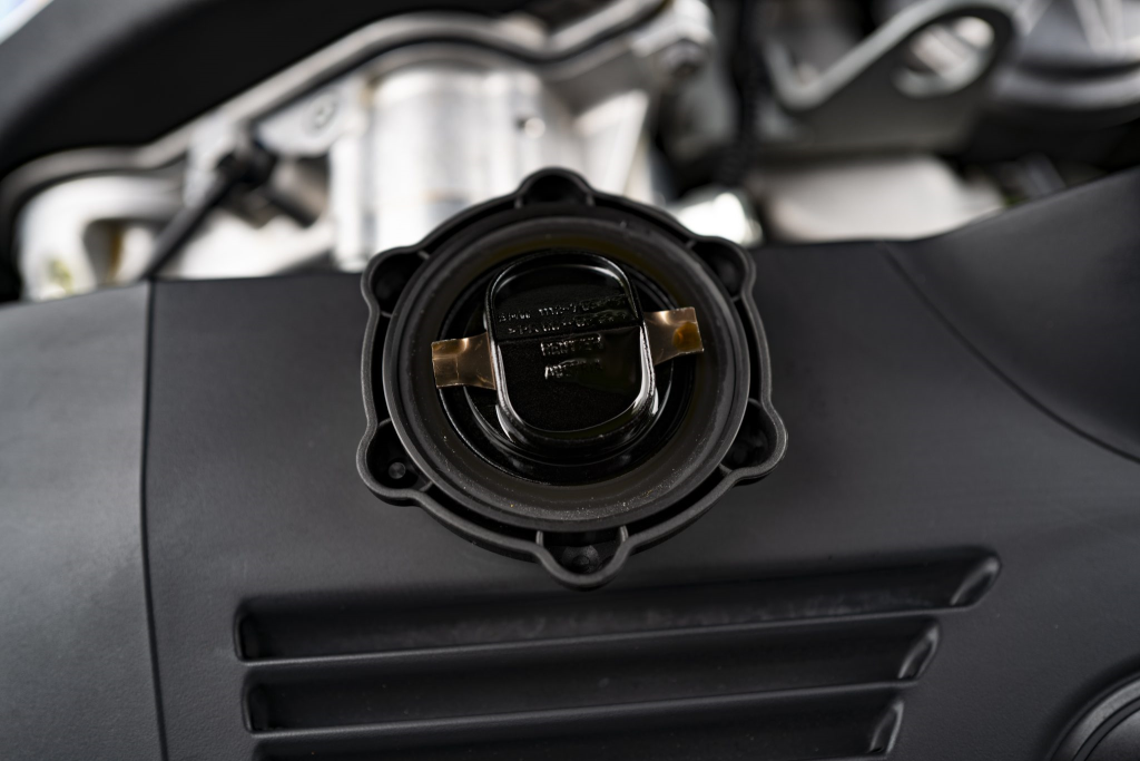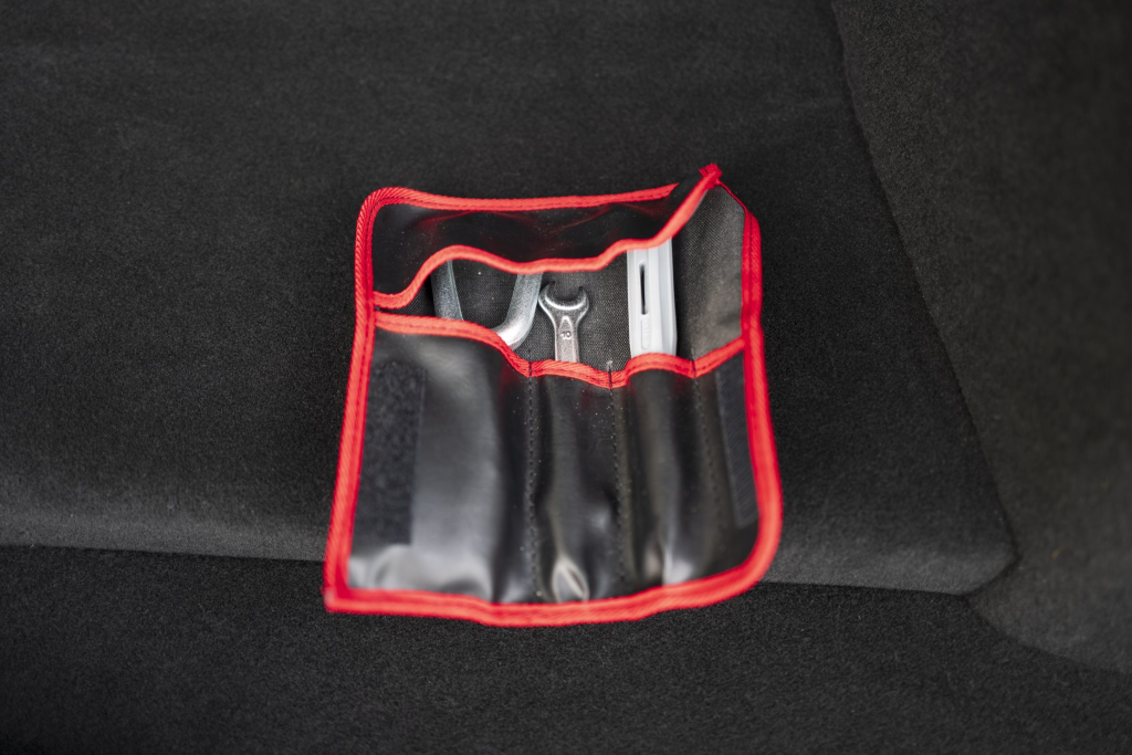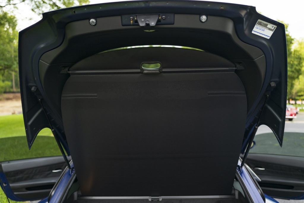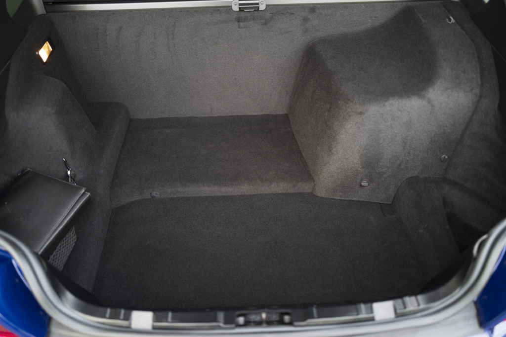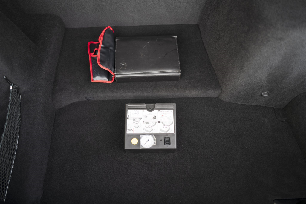The multifunction leather-wrapped steering wheel features tri-color stitching and frames a 190-mph speedometer and a tachometer with an 8k-rpm redline as well as gauges for oil temperature and fuel level. The digital odometer indicates 5k miles, approximately 900 of which were added during current ownership.