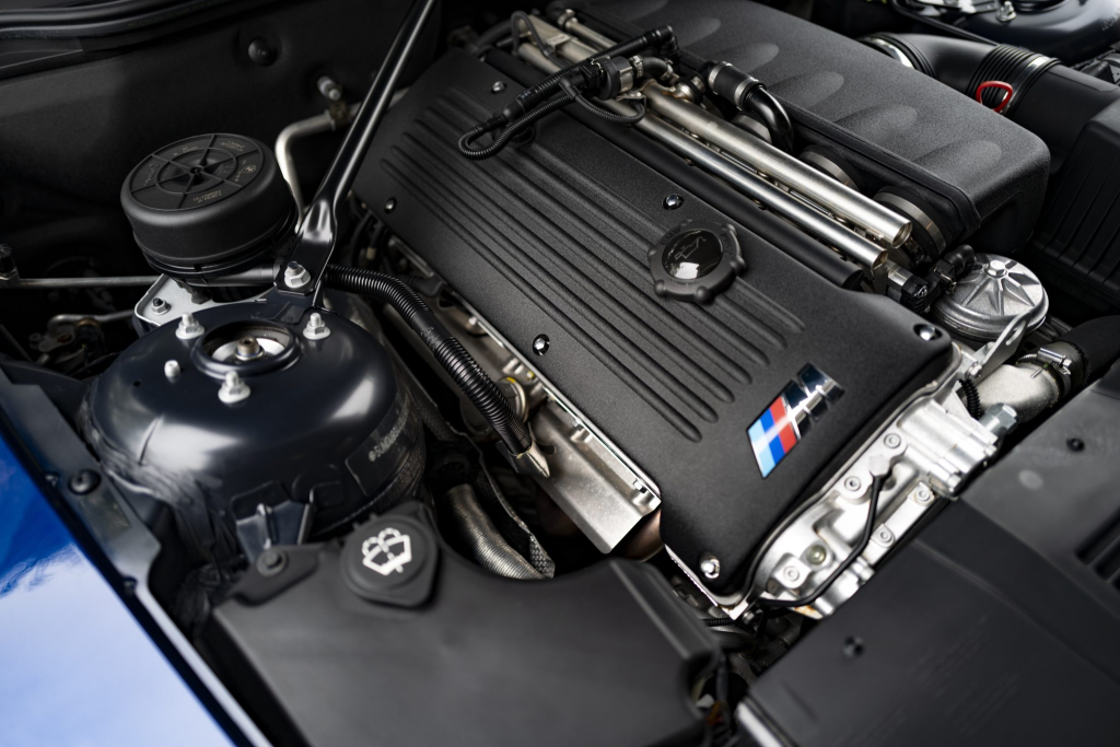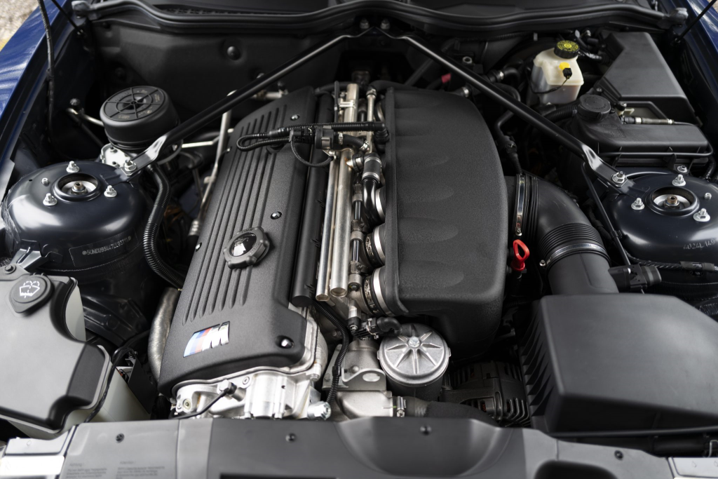 The 3.2-liter S54 inline-six features individual throttle bodies and double-VANOS variable valve timing. Output was rated at 330 horsepower and 262 lb-ft of torque when new.