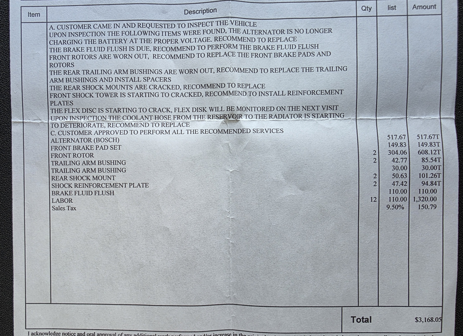 All maintenance I had done is listed below and was personally performed by the Shop Manager of Auto Couture in Fairlawn, NJ via family connection. See my pre-purchase inspection in photos & associated maint below.