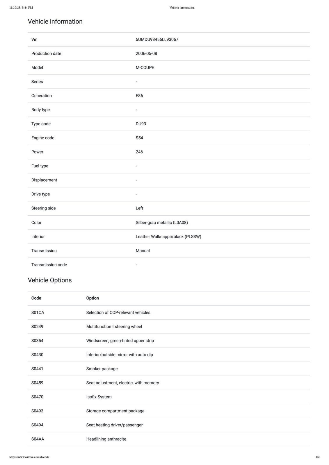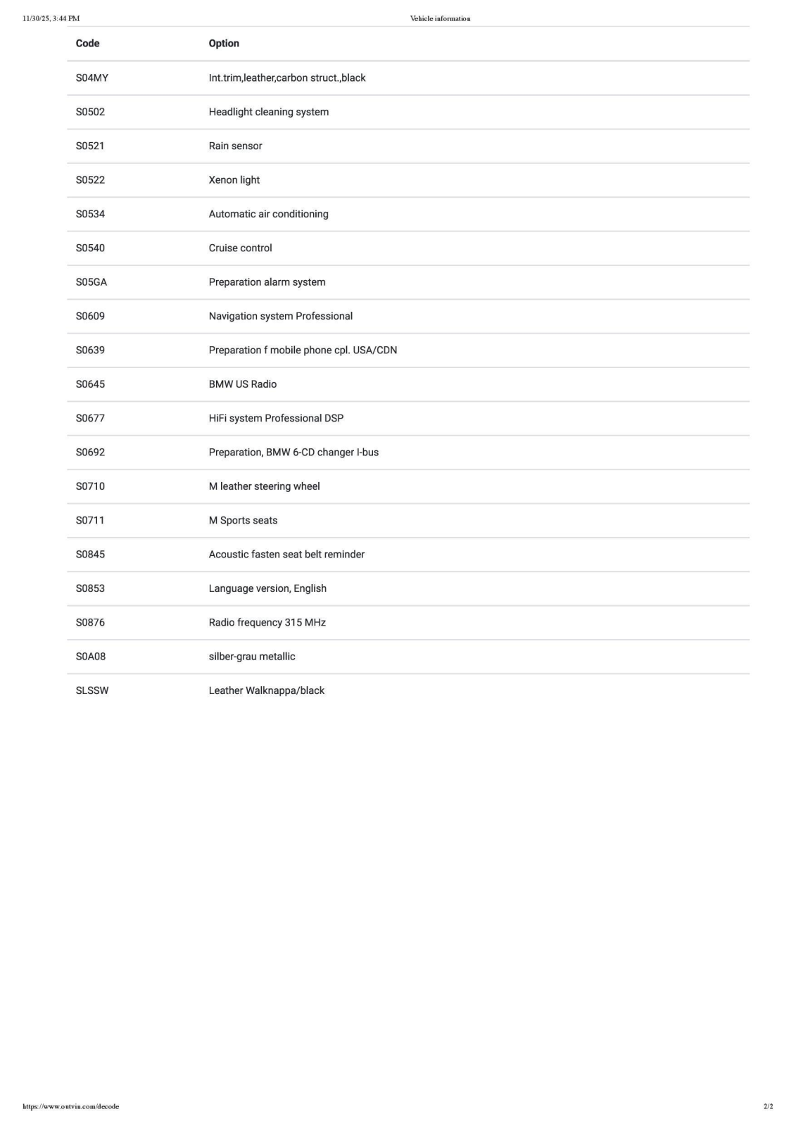 Original factory options include: [4MY] Carbon Leather Interior Trim [MET] Metallic Paint $475 [494] Heated Seats $500 Premium Package $2,500 - Auto-dimming interior and exterior mirrors - BMW Assist with Bluetooth System - Cruise Control - Power Front Seats - Premium hi-fi system - Storage package - Navigation System