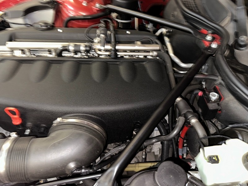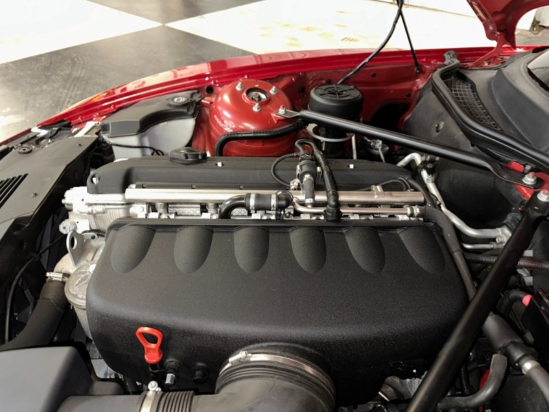 Painted a beautiful Imola Red slick and straight, headlight cleaning, high intensity discharge headlights, Bi-Xenon, front & rear bumpers are body color, heated door mirrors. 18″ x 8.0″ in front and 18″ x 9.0 in rear Alloy wheels. Front & rear anti roll bars, all glass and rubber is good. A real head turner.