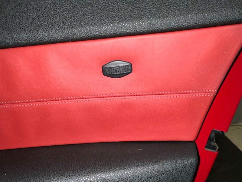 The interior is Imola Red w/Nappa leather interior, power steering, power windows, remote keyless entry, steering wheel mounted audio control, driver’s door bin, driver vanity mirror, front reading lights, illuminated entry-speed-sensitive wipers. Rain sensing wipers, power door mirrors, delay off headlights, fully automatic headlights, front dual impact air bags, dual front side impact airbags, knee airbag, occupant sensing airbag, anti-theft AM/FM/CD audio system, radio data system, 10-speakers, A/C & Heat, Automatic temperature control, rear window defrost, passenger cancellable airbag, low tire pressure warning. All factory gauges. Looks new inside!