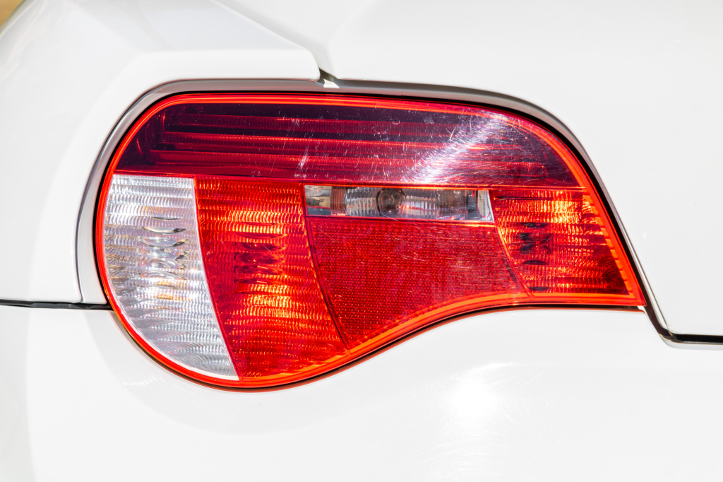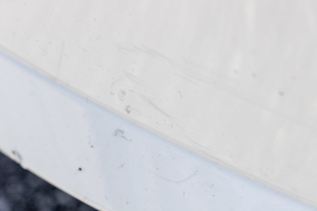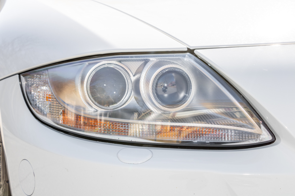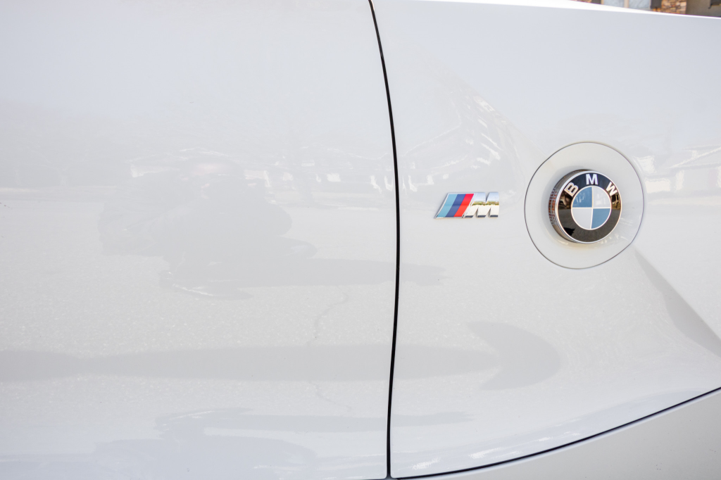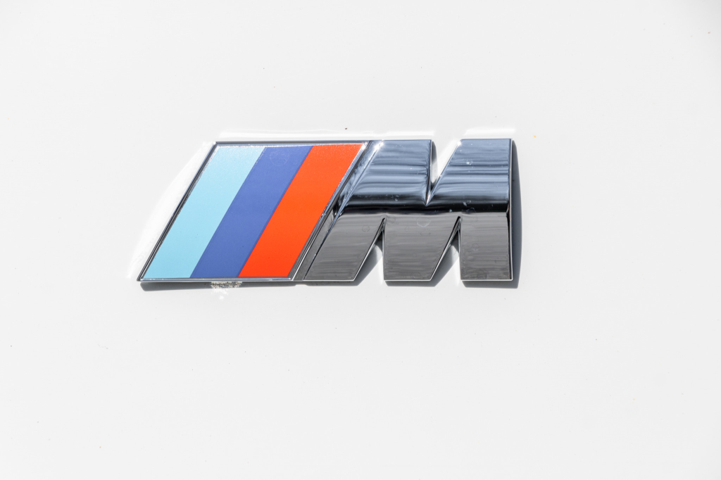The exterior is finished in Alpinweiss 3 and features quad exhaust outlets, M badging, and xenon headlamps with washers. The seller notes scrapes on the front lip, photos of which can be viewed in the gallery.
