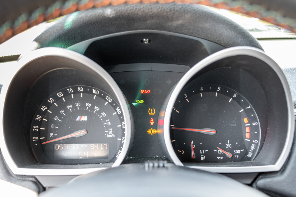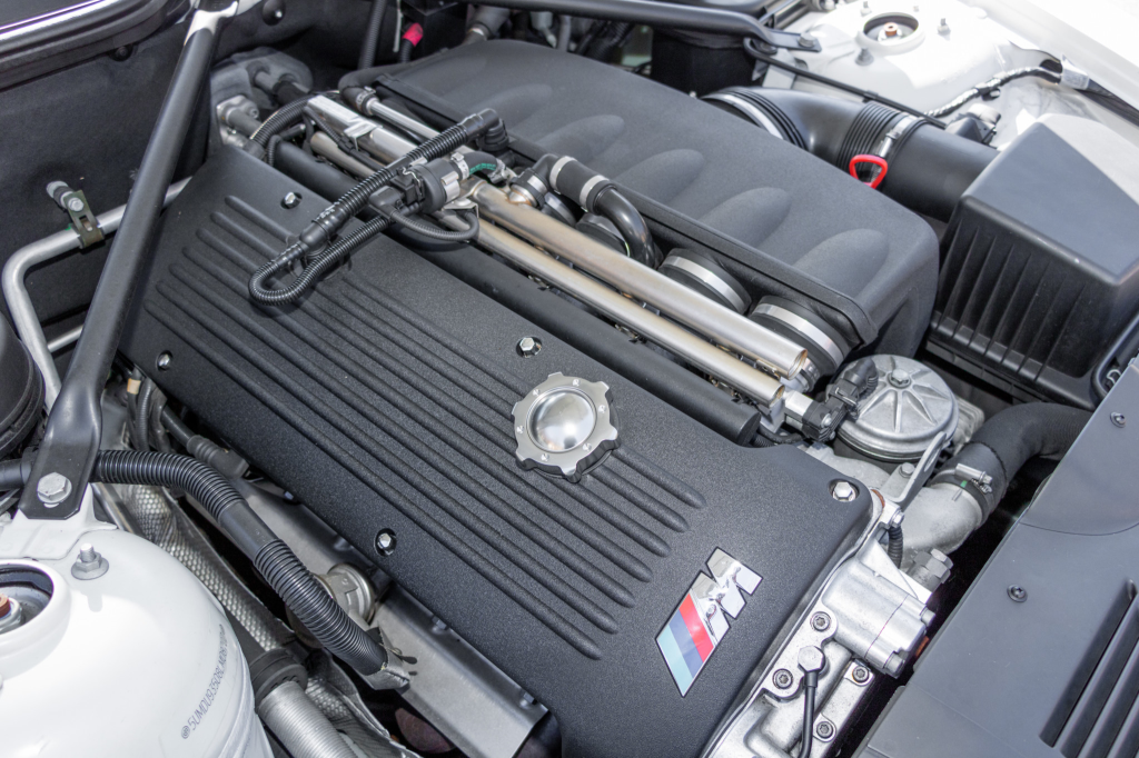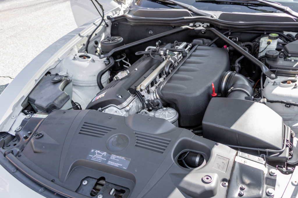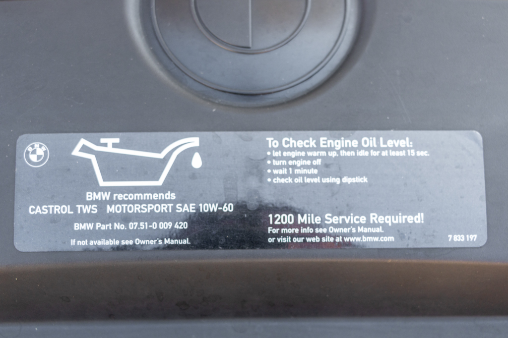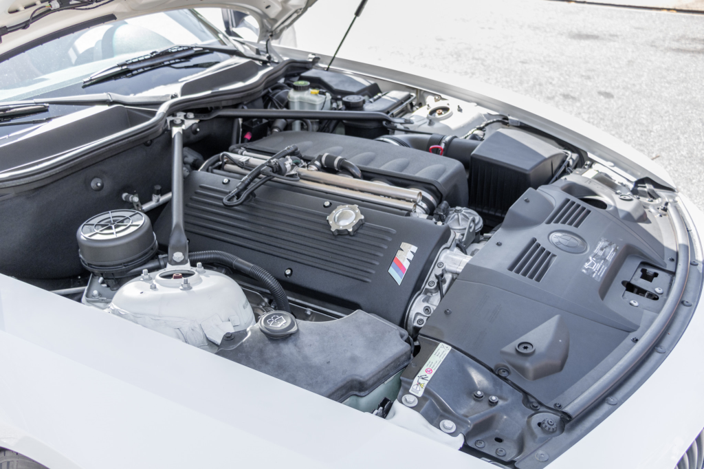The 3.2-liter S54 inline-six features individual throttle bodies and Double-VANOS variable valve timing and produced 330 horsepower and 262 lb-ft of torque when new. The seller reports that an oil change was recently performed.