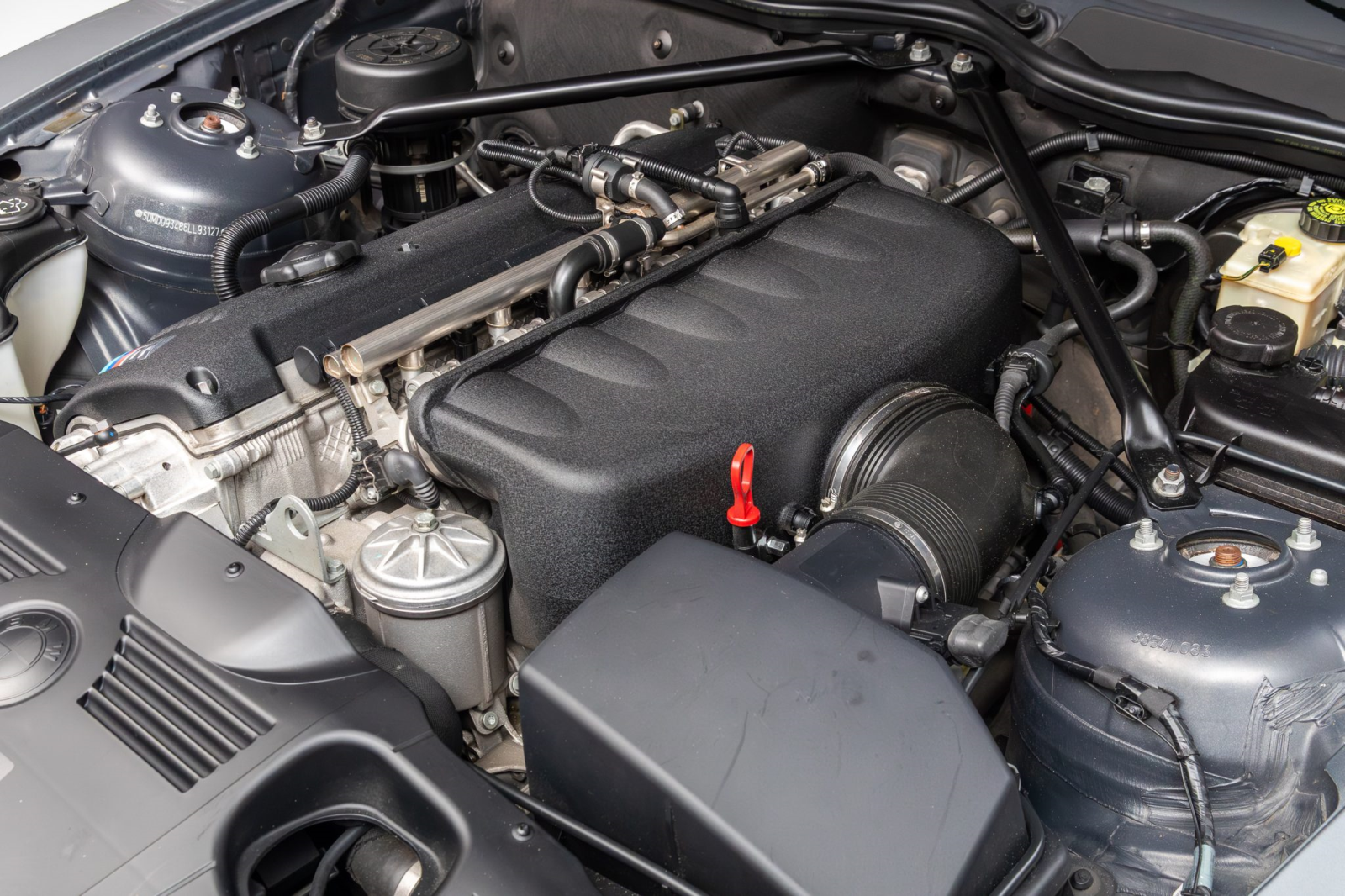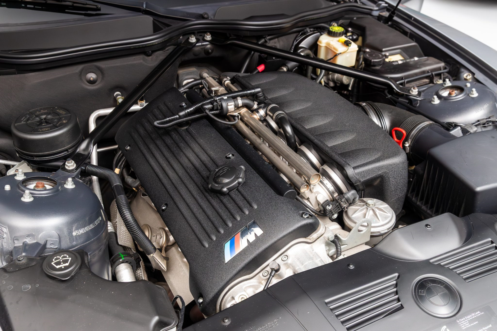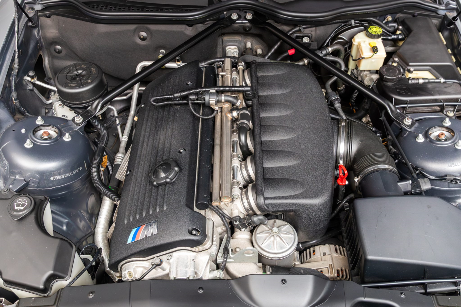 The 3.2-liter S54 inline-six features individual throttle bodies and double-VANOS variable valve timing. Output was rated at 330 horsepower and 262 lb-ft of torque when new.